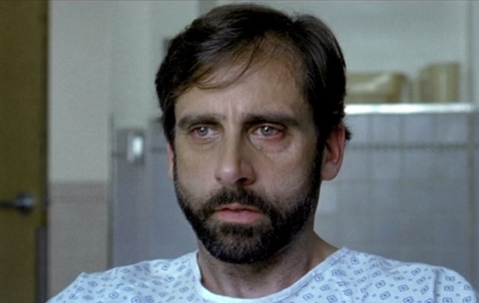 Though Carell’s most well-known (and well-regarded) Very Sad Man is Frank, a heartbroken and disgraced former college professor forced to join his sister’s family on a road trip in Little Miss Sunshine (2006), the platonic ideal is Dan Burns in 2007’s Dan in Real Life. While the movie itself isn’t memorable, its odd poster is, featuring a tight close-up of Carell’s face, sideways on a stack of pancakes, suggesting that the titular Dan is so exhausted with real life that he can’t even make it to a bed before taking a nap.
