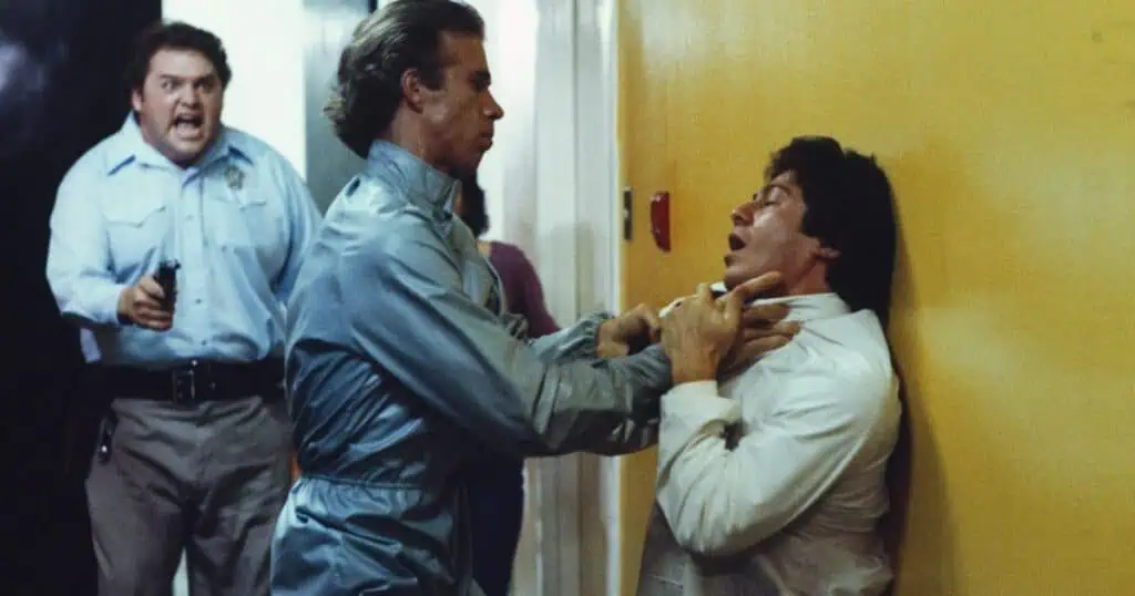 The love scene in Silent Rage has become somewhat notorious in that (a) it's very long, (b) it's set to a theme song called "It's Time to Love," and (c) Norris's fans disliked it so much he vowed never to do another one again. Norris, for his part, looks about as uncomfortable as he does doing anything that doesn't involve defenestrating someone. The only time he looks more uncomfortable is when he attempts comic banter with his number one deputy Charlie (Stephen Furst), who is so dumb and ill-suited for his job (which involves carrying a loaded weapon) that one assumes everyone else more qualified left town or died at some point.